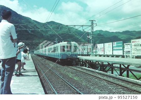 昭和の夏の伊豆急河津駅、列車は100系電車、1973年8月4日