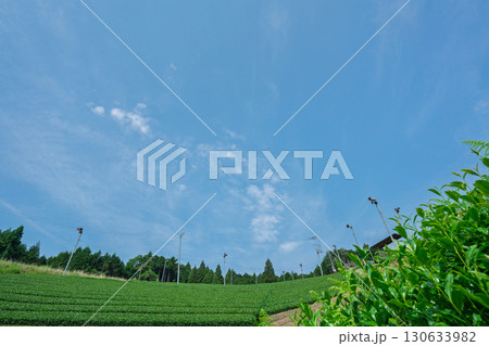 京都府綴喜郡宇治田原町で撮影した緑豊かな茶畑と桜