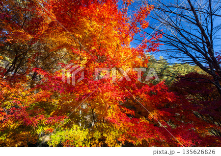 長野県上伊那郡箕輪町東箕輪 紅葉の名所もみじ湖(箕輪ダム)竹の尾広場付近の鮮やかなモミジ