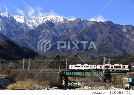 冬の伊那谷より飯田線、中田切川と中央アルプス2