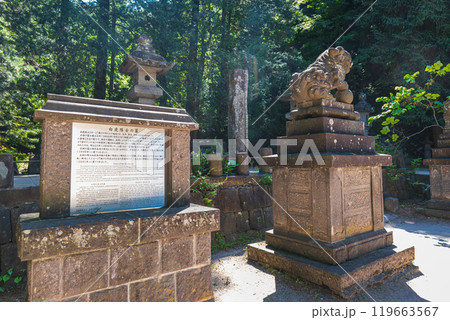亀形石を台座とした碑石(会津藩主 松平家墓所)