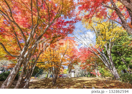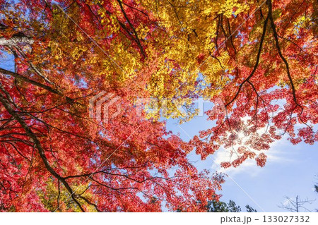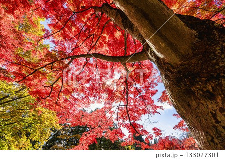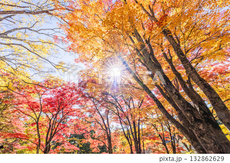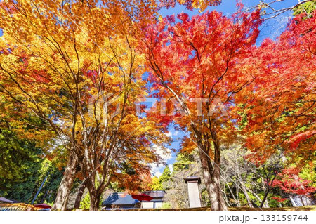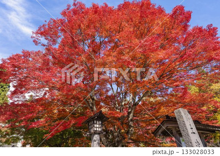 秋の土津神社(はにつじんじゃ) 参道の紅葉 もみじ 福島県猪苗代町
