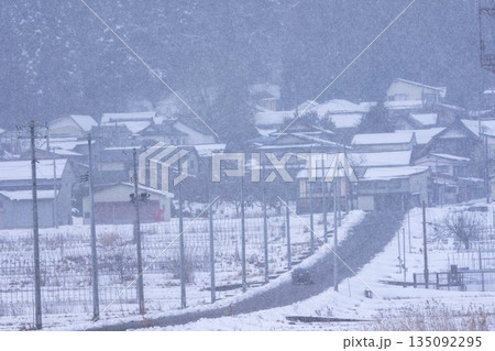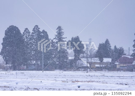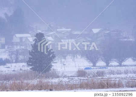 吹雪の会津美里の風景 福島県会津美里町