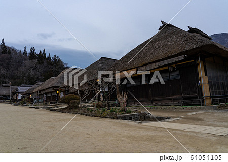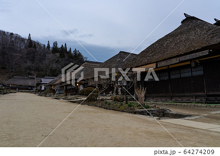 福島県 南会津郡下郷町 大内宿の古民家 夕暮れ