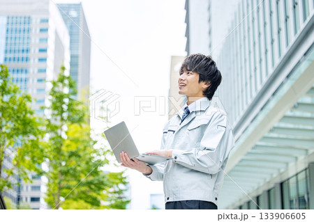 作業着を着た若い男性