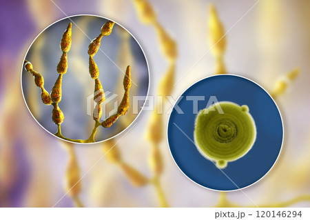 Mold Alternaria alternata, illustration and photo of colony on nutrient medium