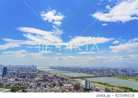 大阪中心街 梅田 都市風景 淀川【梅田スカイビルより】