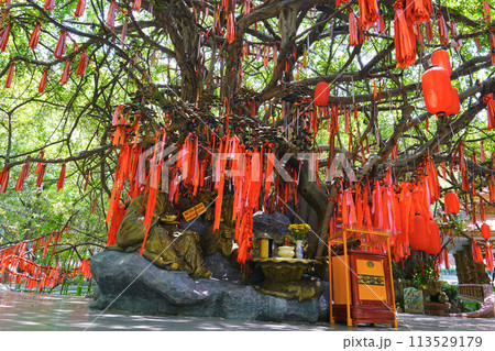袋井市にある朝の紅葉に染まる油山寺の風景(静岡県)