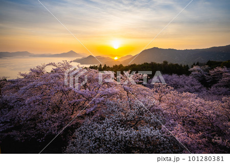 桜咲く開山公園から望む日の出