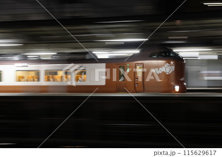 夜の倉敷駅を発車する伯備線特急やくも号(新型273系電車)