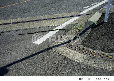 道路橋の継ぎ目とアスファルトの亀裂