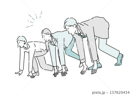 スタートアップのイメージイラストー位置につくビジネスパーソンーチームワークー白バックイラスト素材