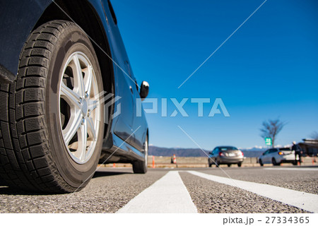 中央道の諏訪湖パーキングで停車中 低い目線 スタッドレスタイヤ
