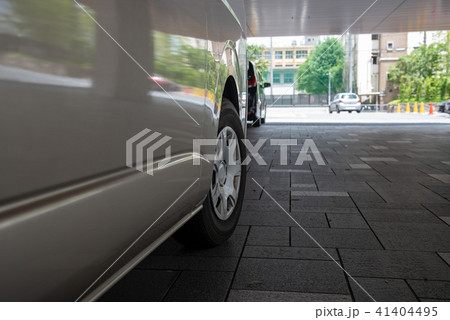 ホテルの玄関前 ワゴン車のタイヤ 車輪