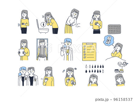 女性の表情イラストセット_生理による症状など