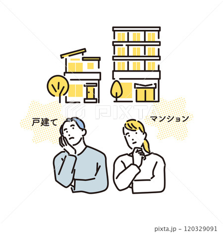シンプル イラスト 一戸建てかマンションか迷う夫婦