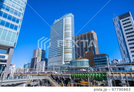 日本の東京都市景観 田町駅前などを望む