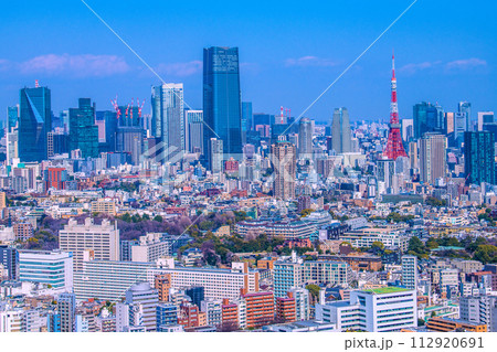 日本の東京都市景観 東京タワーなど、街並みを望む