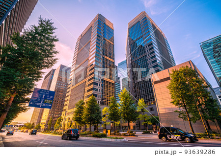 日本の東京都市景観 大手町の交差点からオフィスビル群を望む