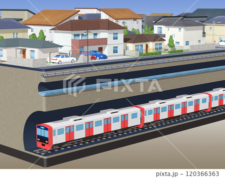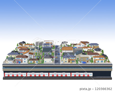 家 住宅 街 CG ジオラマ 地下鉄 BG 街並み 正面 背景