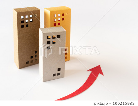 ビルと上昇矢印 業績好調 矢印 急増 マンション タイトル変更