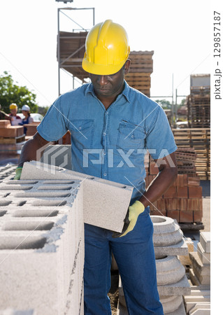 African man checking quality of bricks at construction store