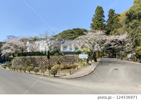 佐伯城 三の丸櫓門と満開の桜