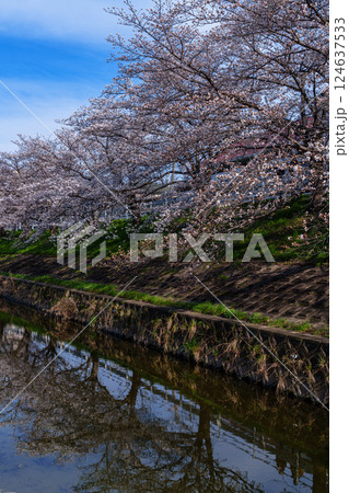 2025年春 奈良佐保の桜 佐保川の堤防と川面に映る美しい桜の花①