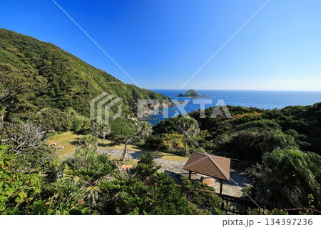 佐多岬展望台へ続く遊歩道の休憩所から佐多岬海岸方面を望む(日本 鹿児島県南大隅町)