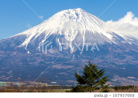 静岡県富士宮市佐折 朝霧高原の田貫湖畔展望台から望む冠雪した世界遺産富士山