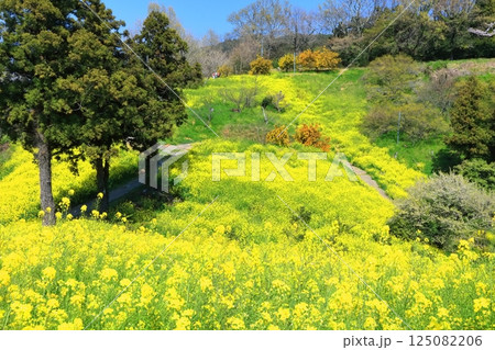 菜の花畑 犬寄峠の黄色い丘 愛媛県伊予市