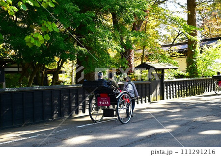 秋田県の小京都,黒い板塀の町並みに映える赤モミジ黄イチョウ美しい紅葉名所角館かくのだて