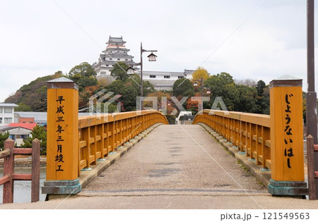 秋の唐津城と城内橋 (佐賀県唐津市)