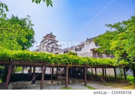 【佐賀県】晴天下の唐津城天守閣と城内橋