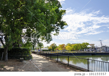 唐津城と城内橋の風景 (佐賀県唐津市)