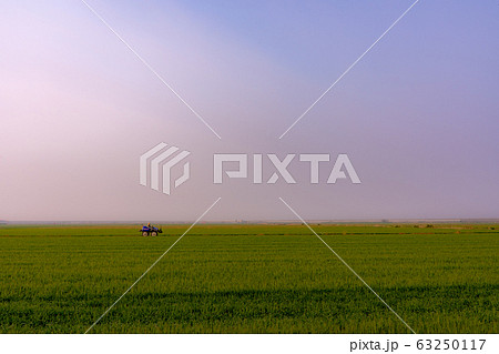 佐賀平野の農地で草の刈り取りをする光景