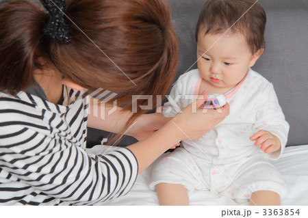 赤ちゃんの体温を測る母親