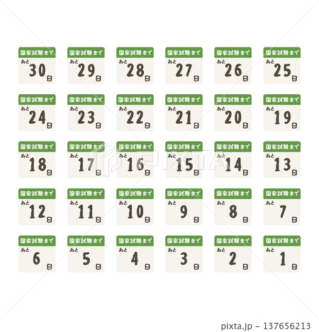 カウントダウンの日めくりカレンダー(国家試験まであと何日)イラストセット