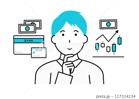 貯金と投資にどのようにお金を振り分けるかを考える男性