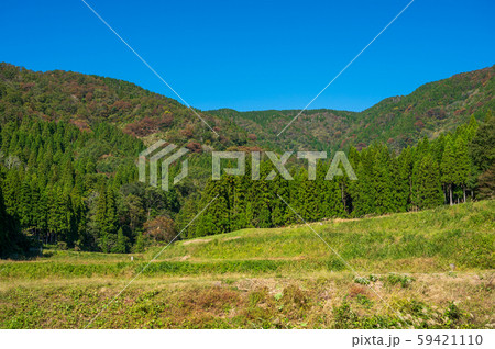 滋賀県湖北地方秋の山田風景 11月