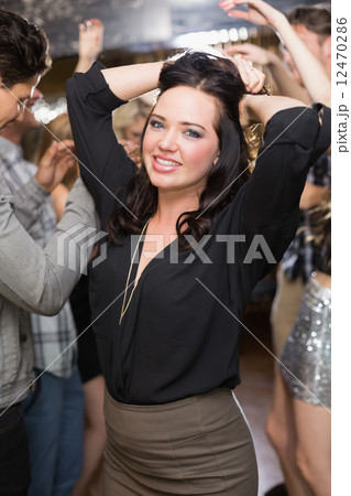 Stylish brunette smiling at camera
