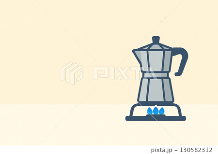 ガスコンロで加熱中のコーヒーポット(直火式エスプレッソマシン)ミニマルイラスト