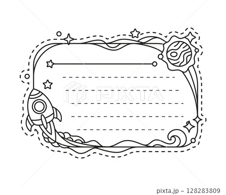 Space rocket and planet kids memo note template. Kids dairy or planner vector memo note linear vector template.Child schedule To Do list or scrapbook frame with flying spacecraft and galaxy planet