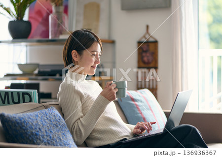 自宅でパソコンを操作する女性