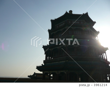 逆光の頤和園の佛香閣
