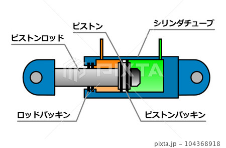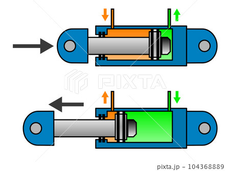 油圧オイルの力で伸縮する油圧シリンダーの内部構造イラスト