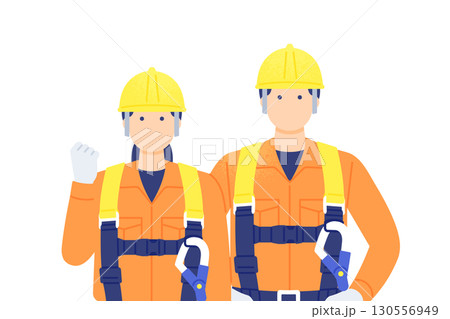 建設現場の安全装備 安全帯・安全靴・ヘルメットを身につけた人物のベクター素材