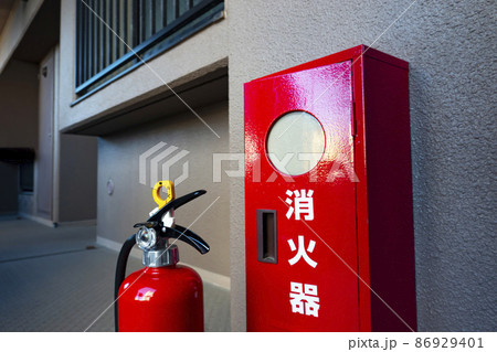 マンションの通路に設置された消火器