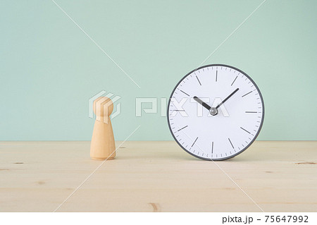 寿命|人の形をした木のオブジェと卓上時計