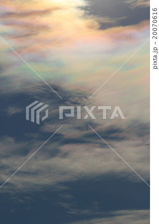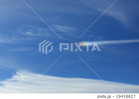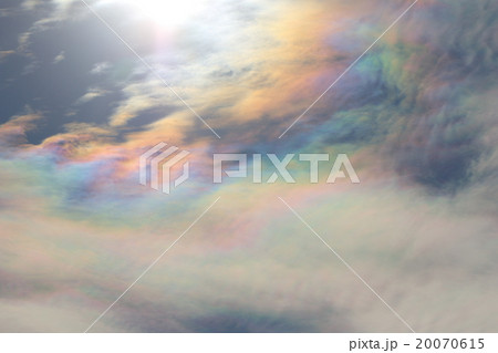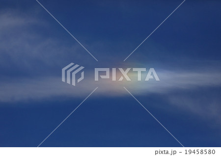 自然 気象 彩雲、薄い雲の上に一瞬現れました。色も大きさも控えめで虹の切れ端のようです